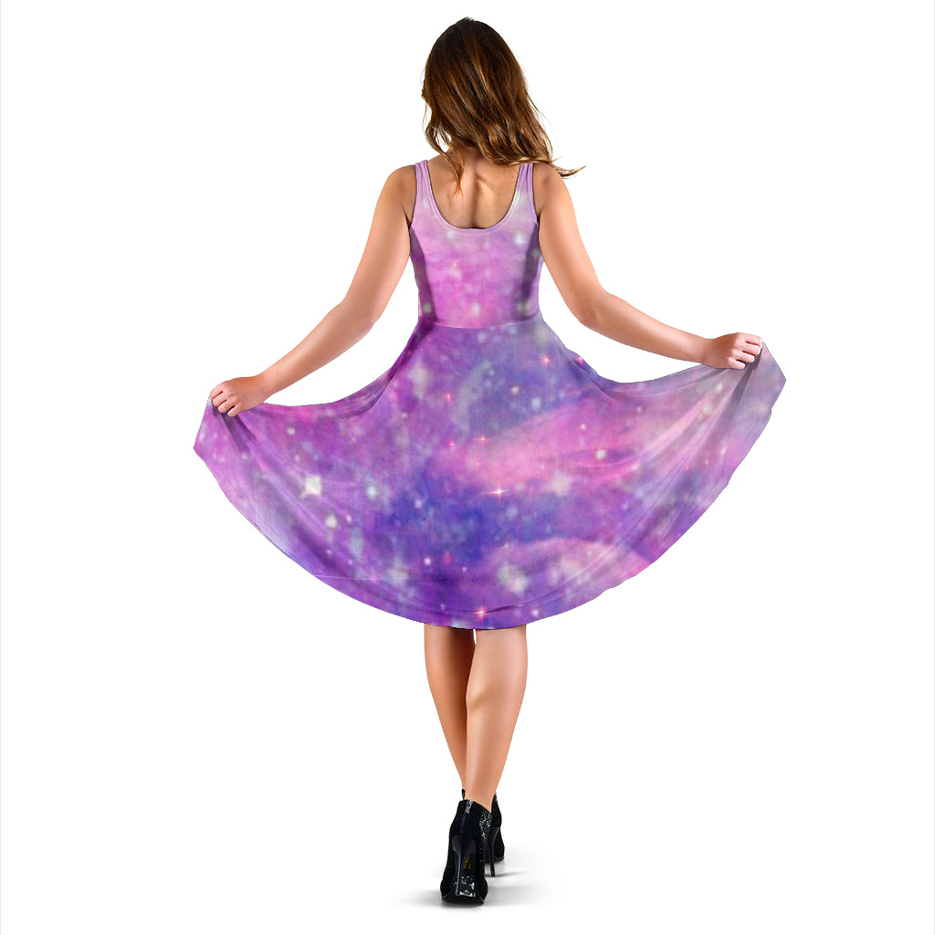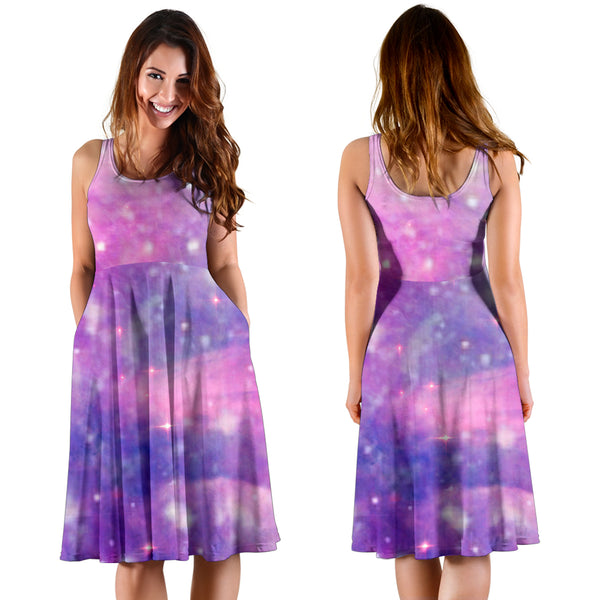 Women's Dress, No Sleeves, Custom Dress, Midi Dress, Pastel Galaxy 01