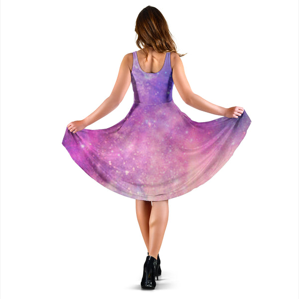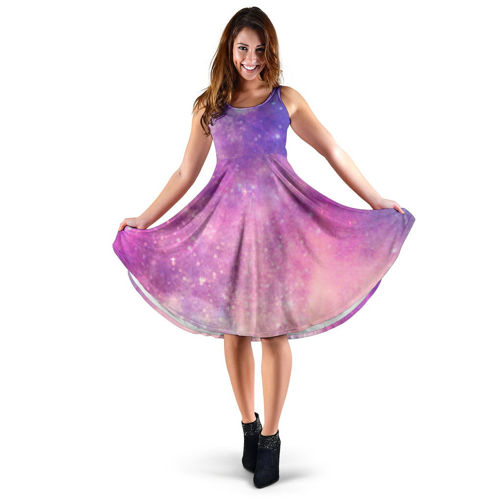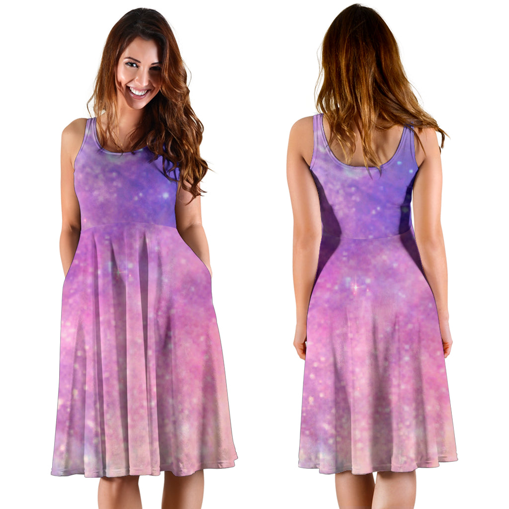 Women's Dress, No Sleeves, Custom Dress, Midi Dress, Pastel Galaxy 03