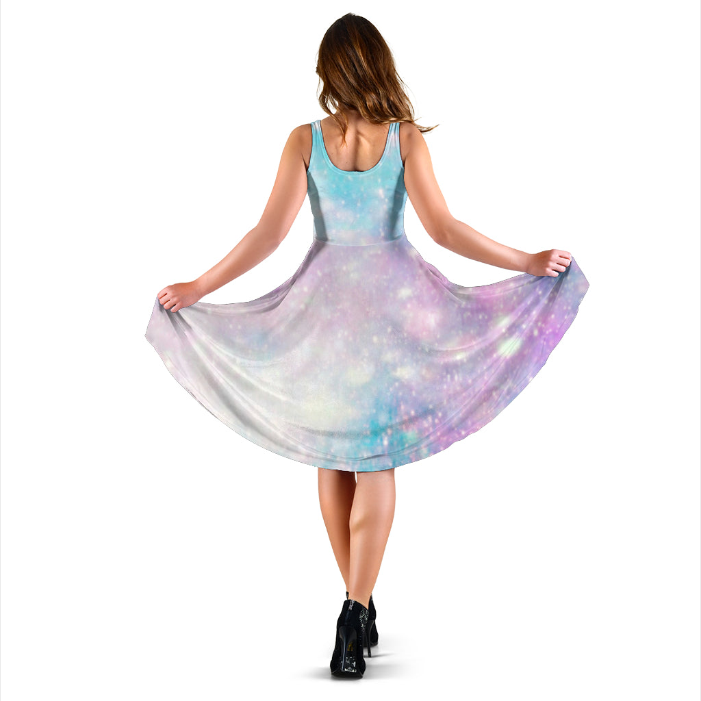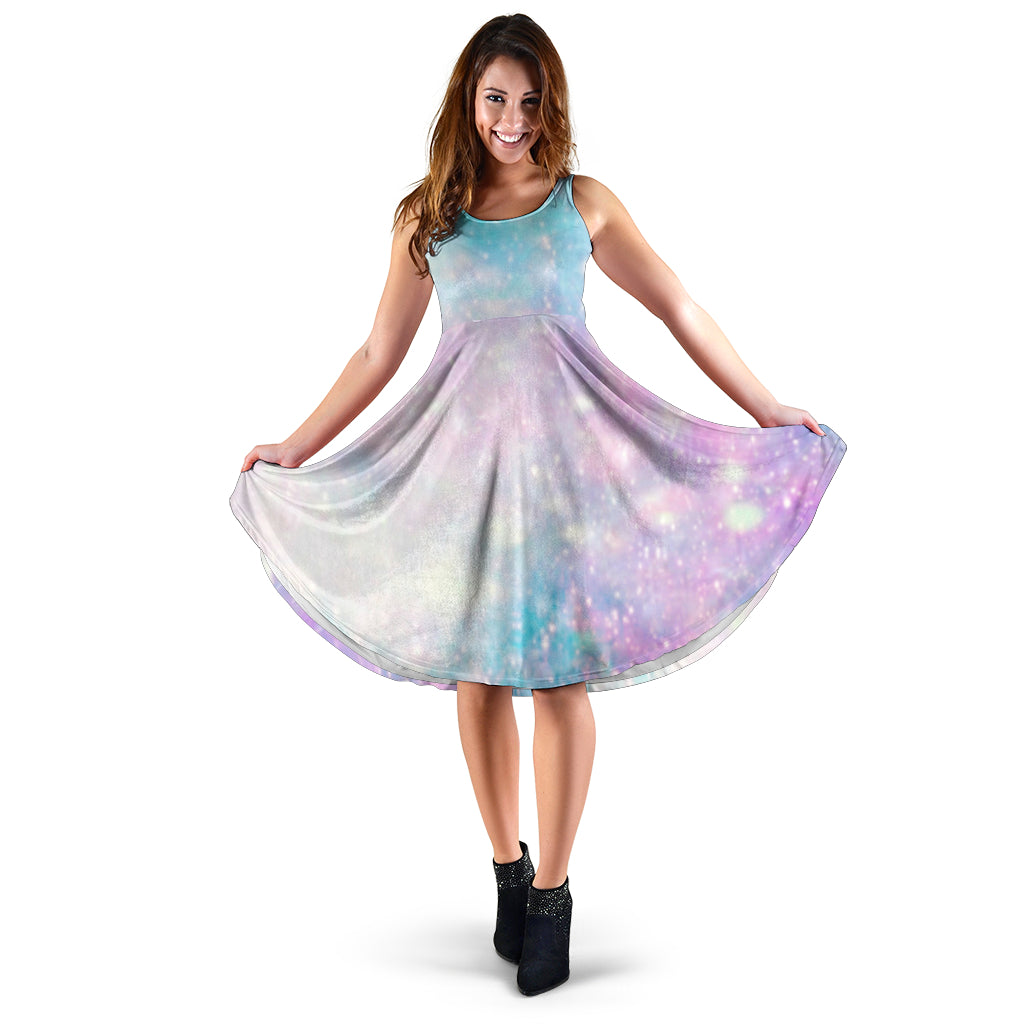 Women's Dress, No Sleeves, Custom Dress, Midi Dress, Pastel Galaxy 06