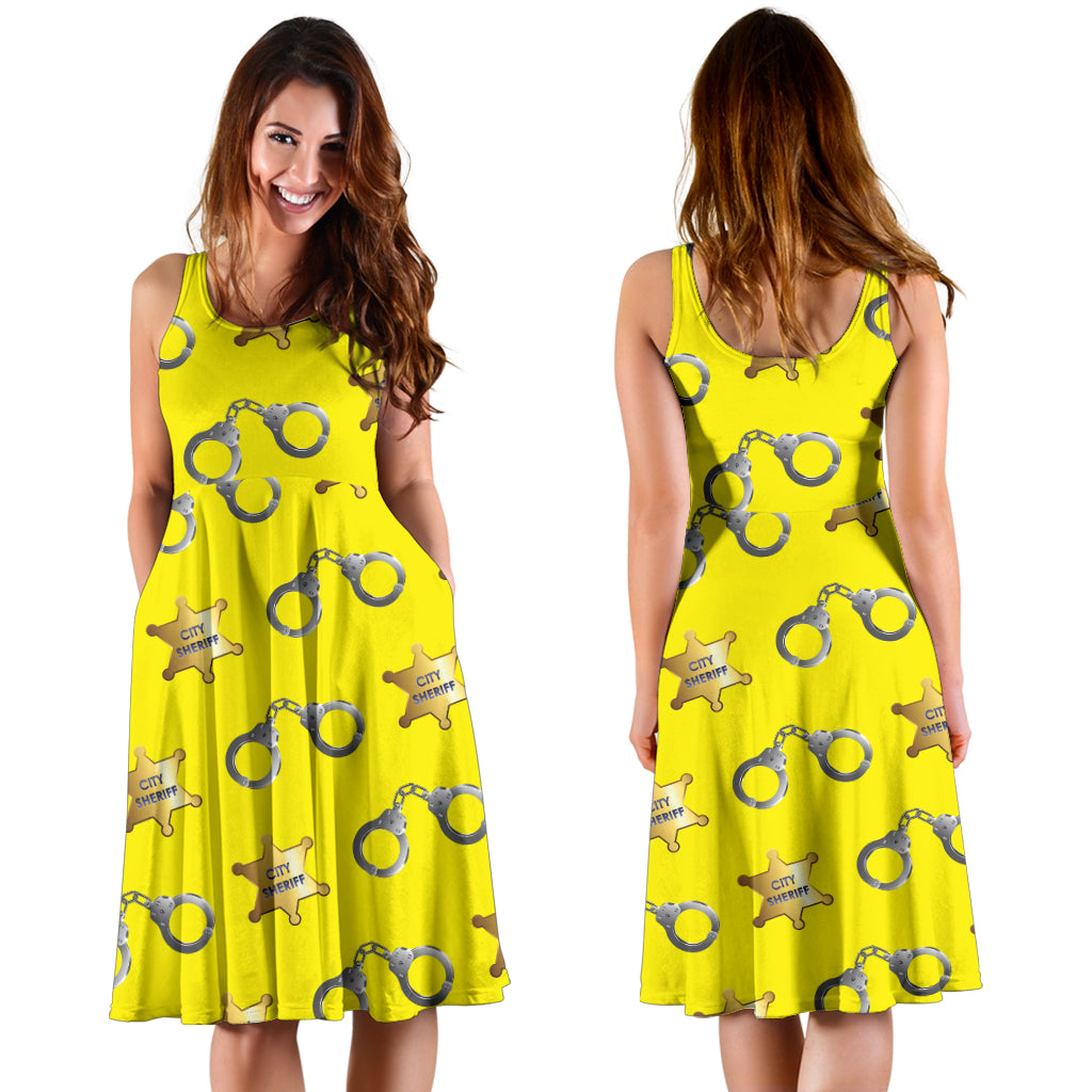 Women's Dress, No Sleeves, Custom Dress, Midi Dress, Police 09