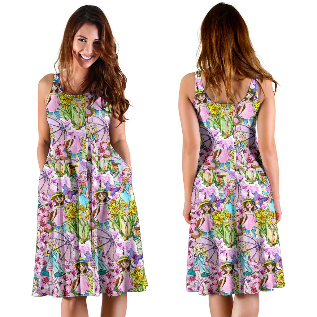 Women's Dress, No Sleeves, Custom Dress, Midi Dress, Spring 1-02