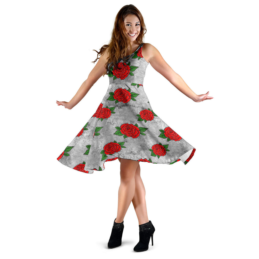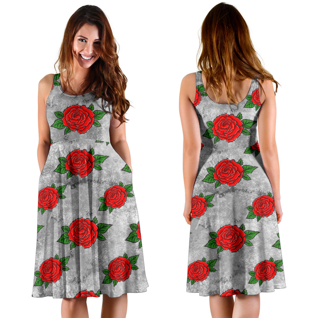 Women's Dress, No Sleeves, Custom Dress, Midi Dress, Sugar Skull 06