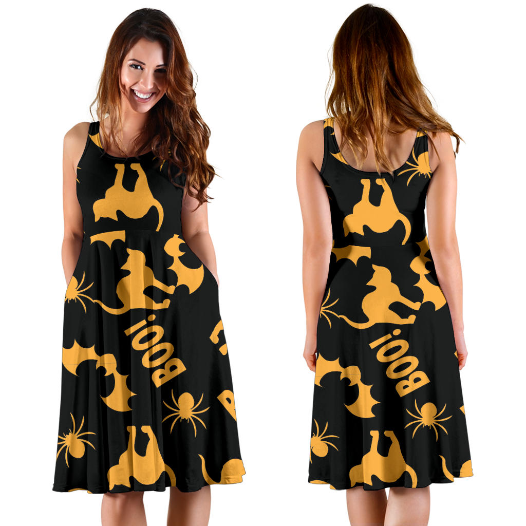 Women's Dress, No Sleeves, Custom Dress, Midi Dress, Trick Or Treat 01