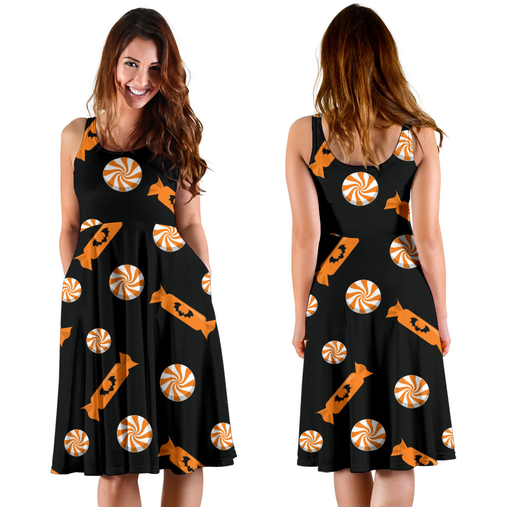 Women's Dress, No Sleeves, Custom Dress, Midi Dress, Trick Or Treat 03