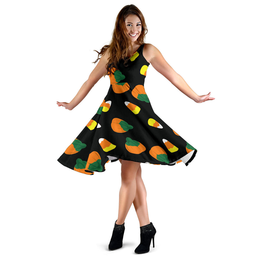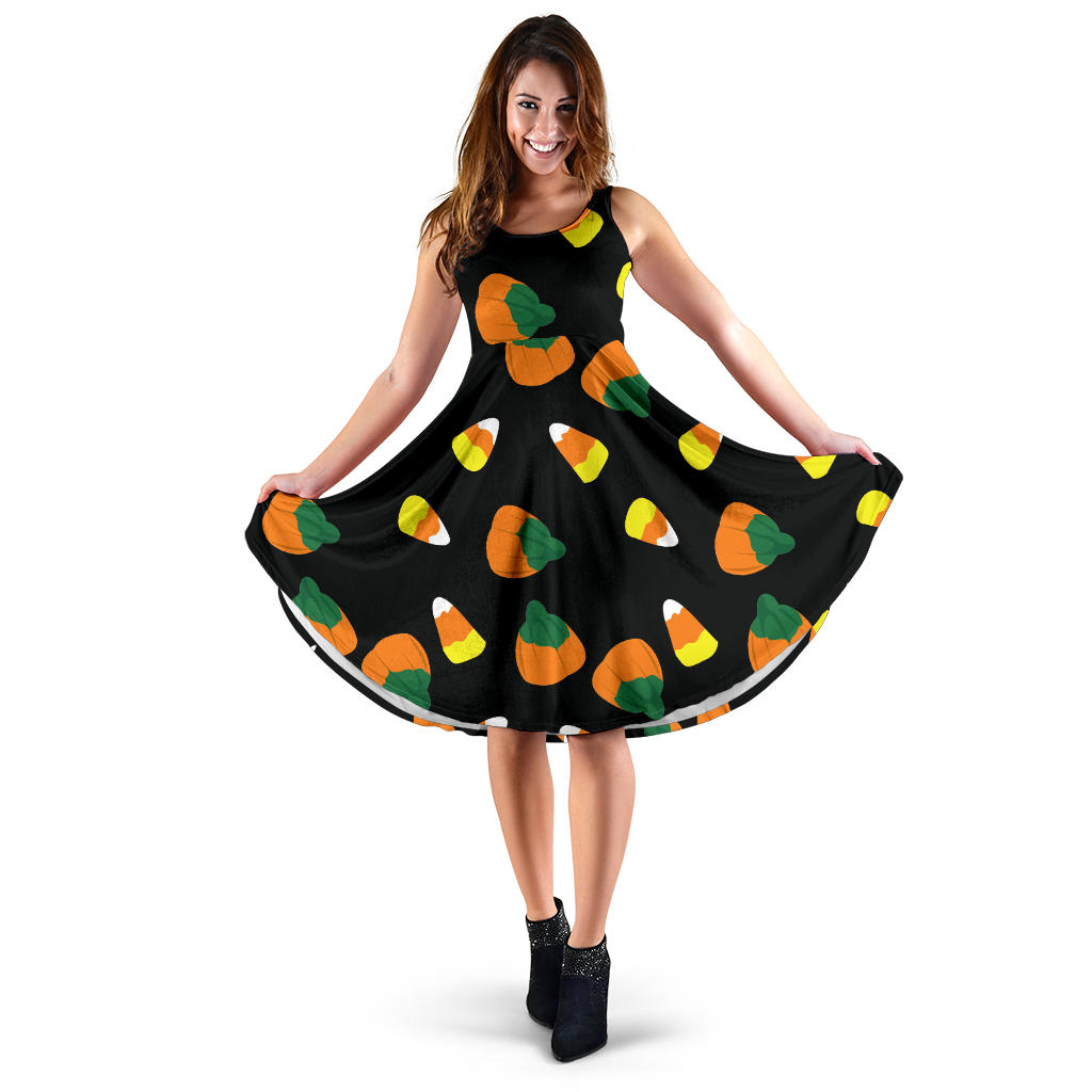 Women's Dress, No Sleeves, Custom Dress, Midi Dress, Trick Or Treat 08