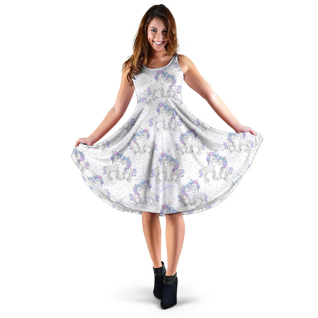 Women's Dress, No Sleeves, Custom Dress, Midi Dress, Unicorn 07