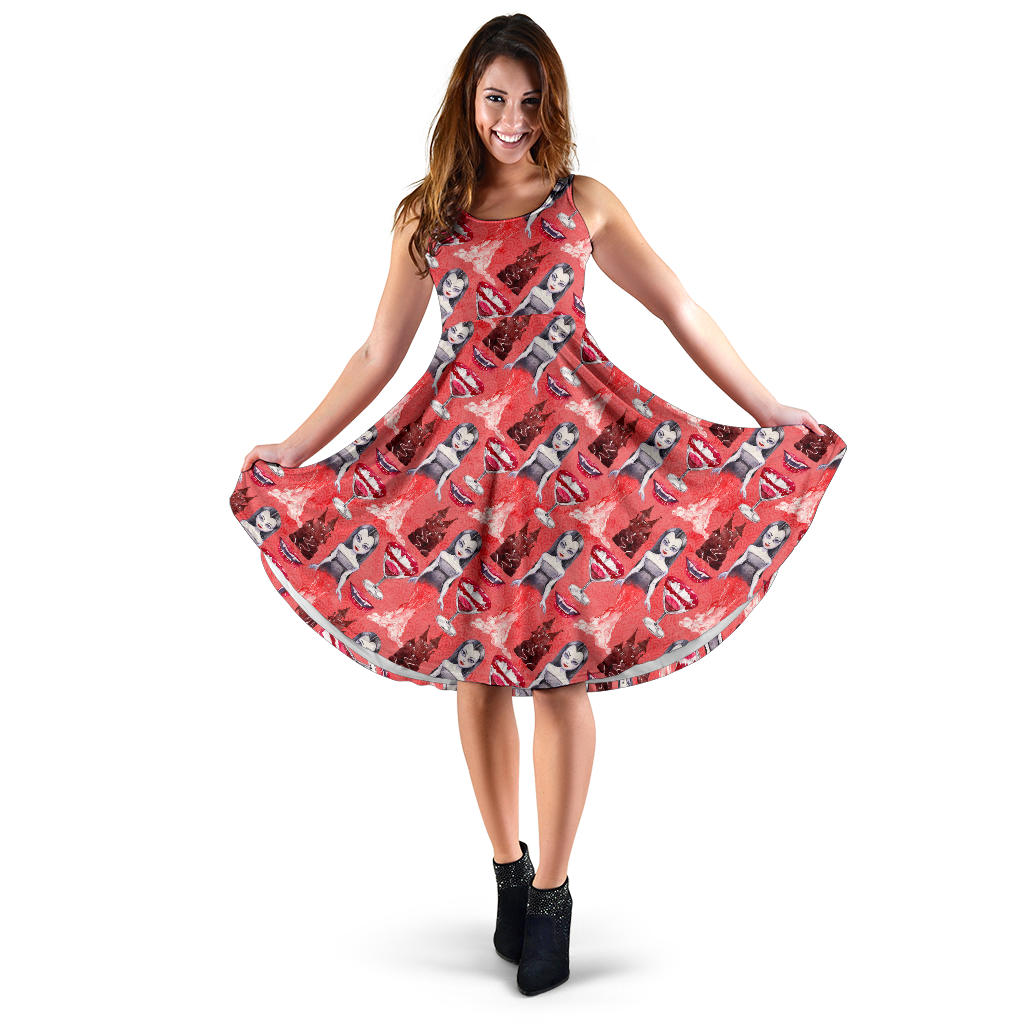 Women's Dress, No Sleeves, Custom Dress, Midi Dress, Vampire 06