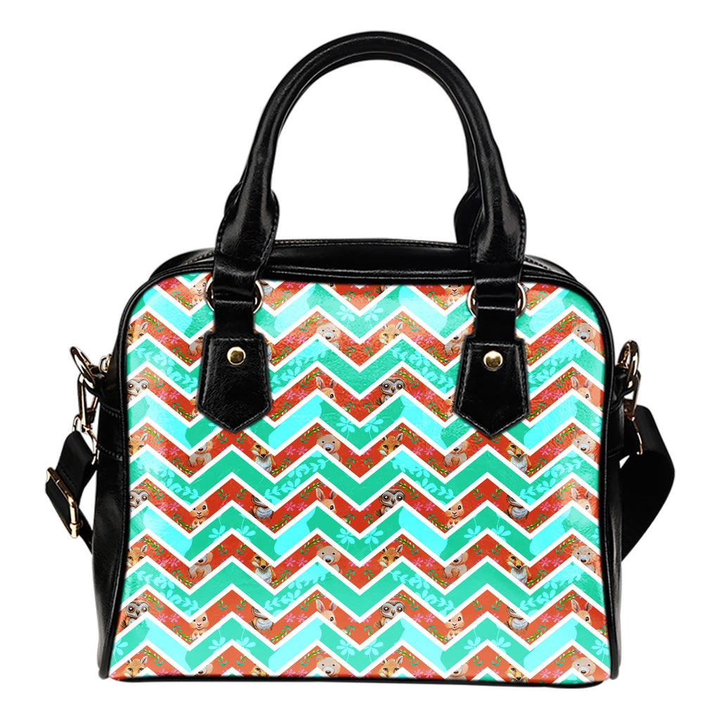 Woodland Themed Design B5 Women Fashion Shoulder Handbag Black Vegan Faux Leather