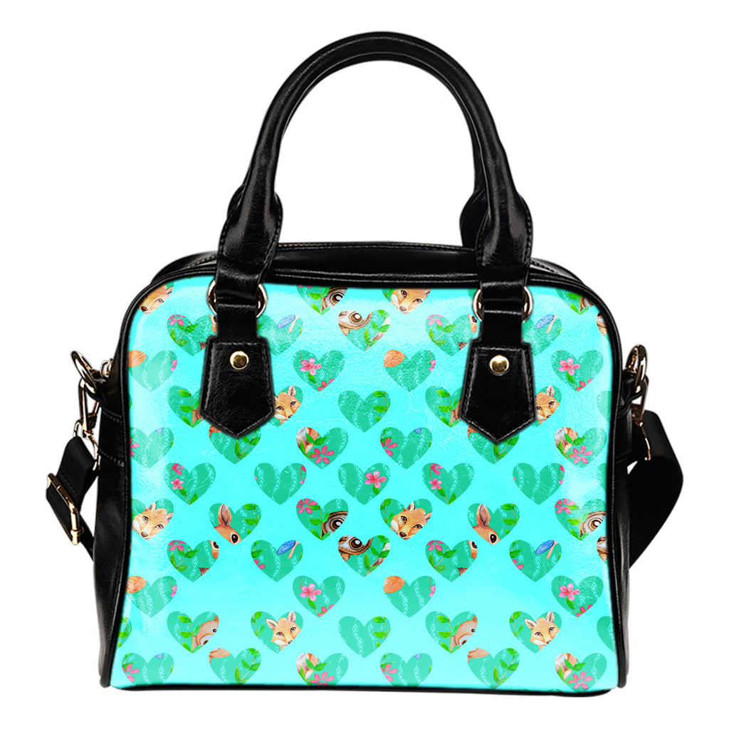 Woodland Themed Design B6 Women Fashion Shoulder Handbag Black Vegan Faux Leather