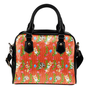 Woodland Themed Design B7 Women Fashion Shoulder Handbag Black Vegan Faux Leather