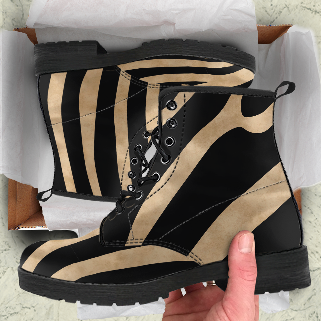 - Features eco-friendly leather with a double-sided print and rounded toe construction.